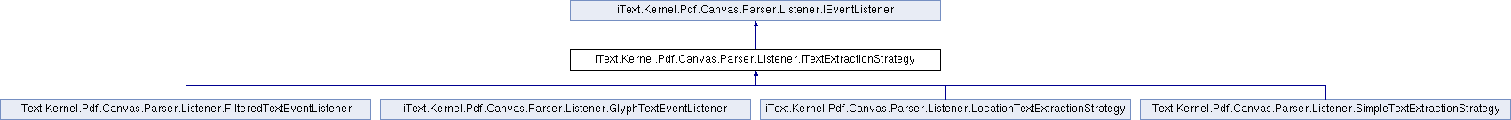 Implemented in iText.Kernel.Pdf.Canvas.Parser.Listener.LocationTextExtractionStrategy, iText.Kernel.Pdf.Canvas.Parser.Listener.SimpleTextExtractionStrategy, iText.Kernel.Pdf.Canvas.Parser.Listener.GlyphTextEventListener, and iText.Kernel.Pdf.Canvas.Parser.Listener.FilteredTextEventListener.