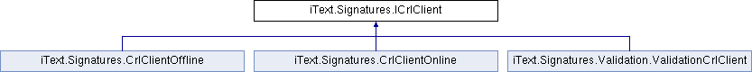 Implemented in iText.Signatures.Validation.ValidationCrlClient, iText.Signatures.CrlClientOnline, and iText.Signatures.CrlClientOffline.